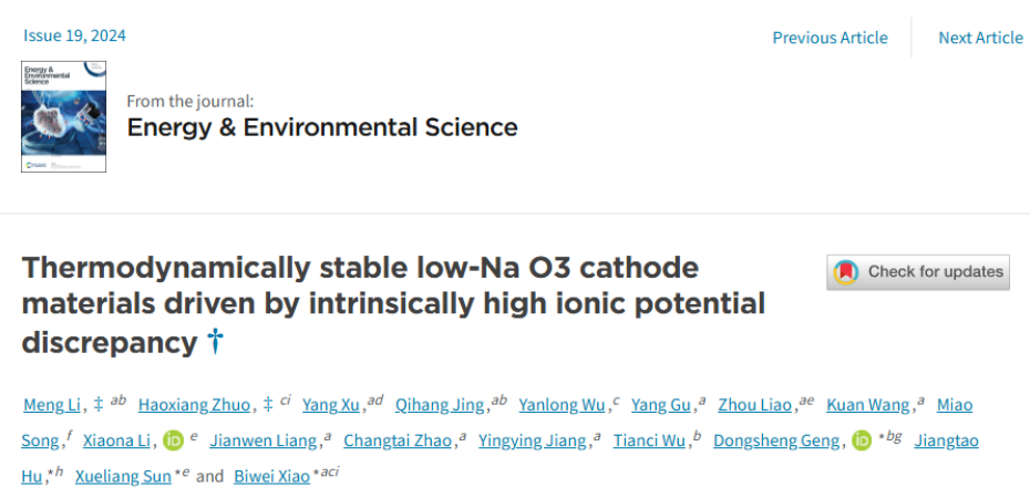 东方理工大学(暂名)孙学良、李晓娜团队,有研广东院肖必威团队,北京科技大学耿东生团队,深圳大学胡江涛团队等在《Advanced Energy Materials》期刊上发表了题为“Thermodynamically stable low-Na O3 cathode materials driven by intrinsically high ionic potential discrepancy”的论文。提出了一类新型低Na含量的O3类型层状材料,打破了容量,倍率及稳定性三者关系相互制约,团队对此类材料进行了彻底的物理结构和电化学方面解析。李猛和卓浩翔为本文第一作者。
